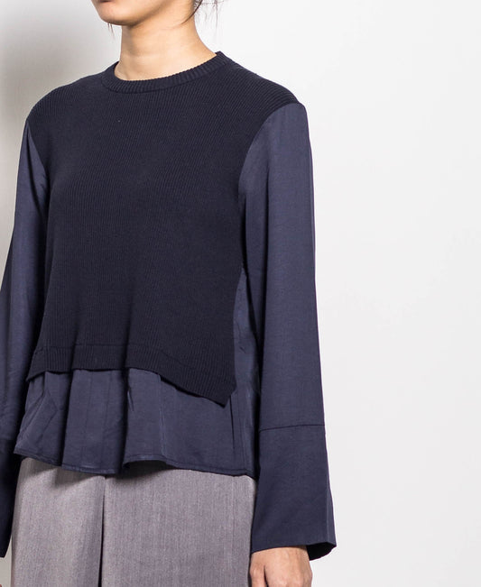 Women Long-Sleeve Knit Top - Navy - H0W738