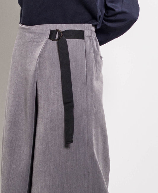 Women Culottes With Buckle Belt - Dark Grey - H0W743