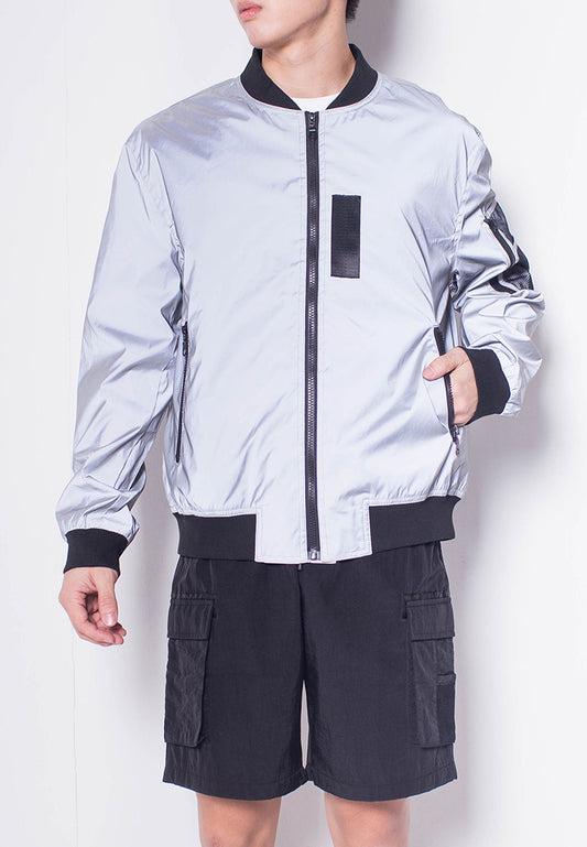 Men Reflective Bomber Jacket - Grey - H0M698
