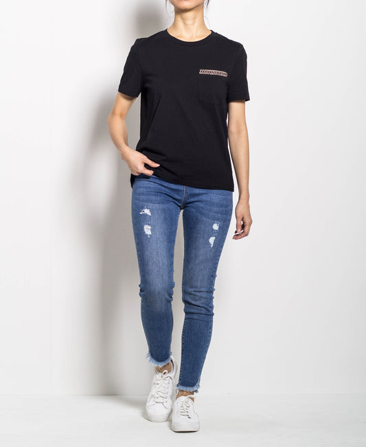 Women Short Sleeve Tee with Pocket - Black - H0W793