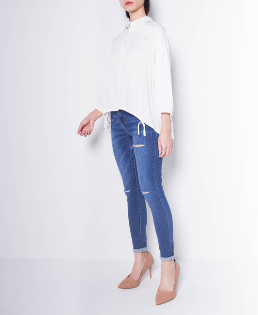 Women Shirt Blouse With Uneven Hemline - White - F9W147