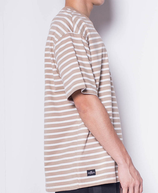 Men Short Sleeve Oversized Striped Tee - Khaki - H0M688