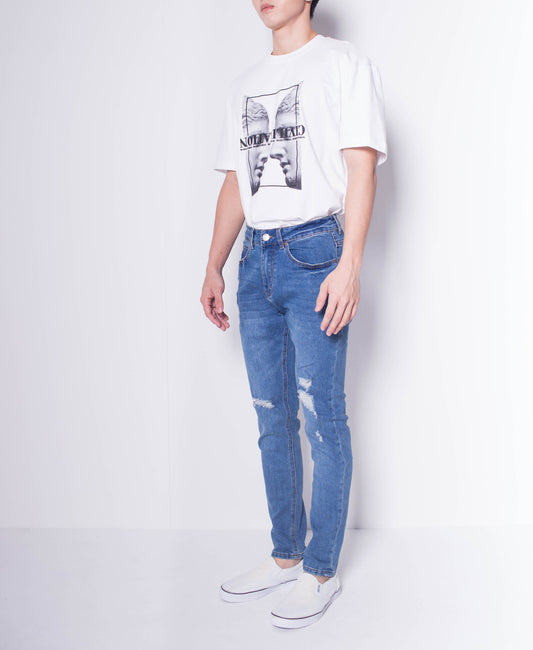 Men Skinny Ripped Long Jeans - Blue - H0M706