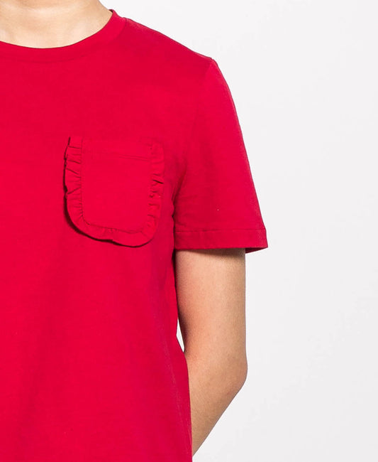 Women Short Sleeve Basic Tee With Pocket - Red - H0W904