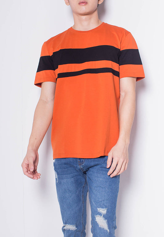 Men Short-Sleeve Striped Panel Tee - Orange - H0M929