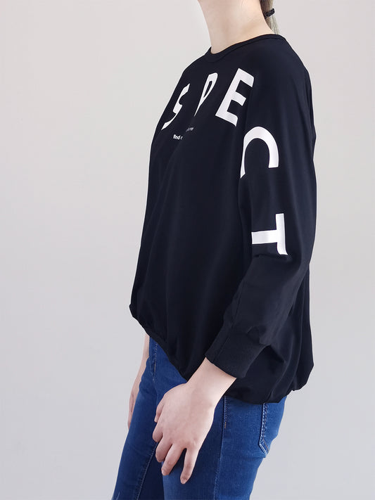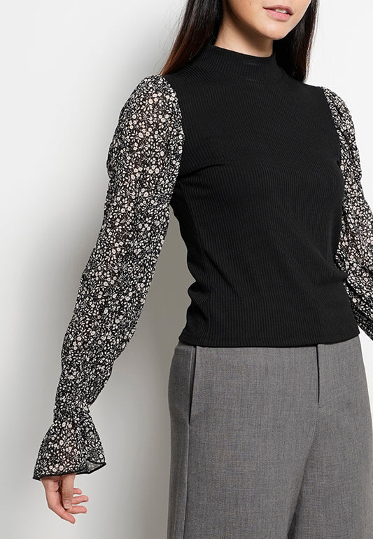 Women High Neck Long-Sleeve Blouse - Black - H0W747