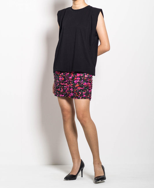 Women Short-Sleeve Blouse With Shoulder Pads - Black - H0W718