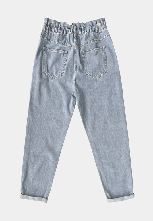 Women Rolled Hem Frills High Waist Jeans - Blue - H0W839