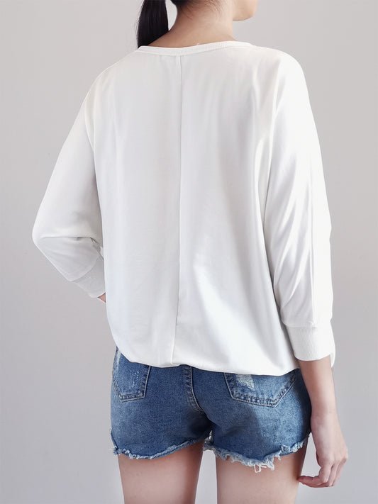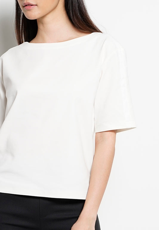 Women Grosgrain Short-Sleeve Blouse - White - H0W759