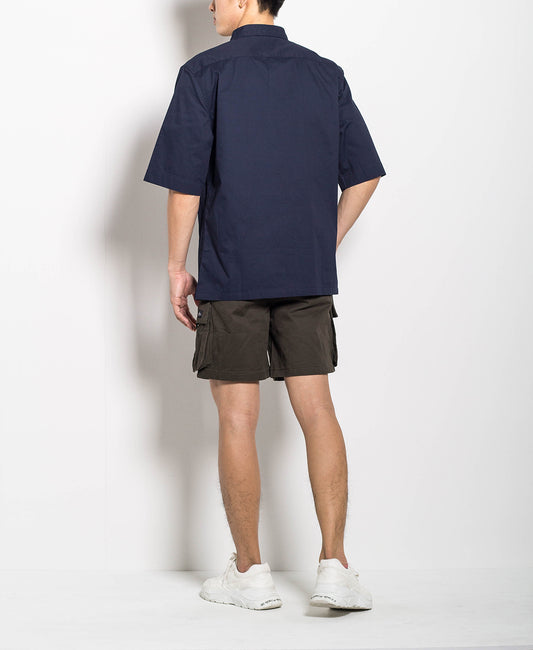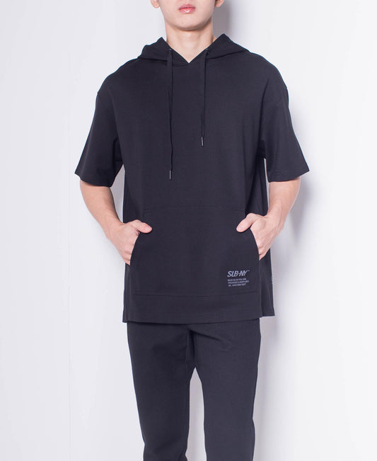 Men Oversized Short-Sleeve Sweatshirt Hoodie - Black - H0M680