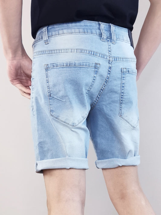 Men Ripped Denim Shorts - Dark Blue - F9M195