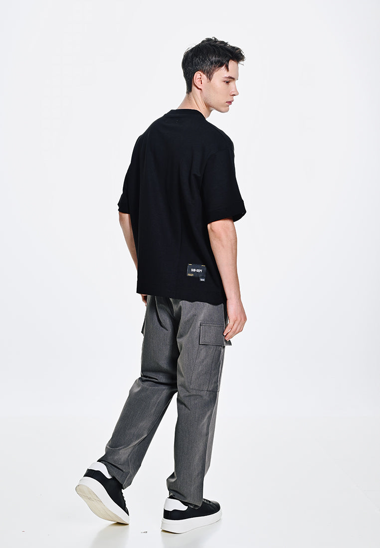 Men Oversized T-Shirt Short Sleeve - Black - 310113