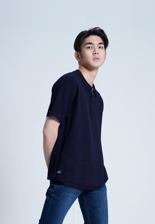 Men Short-Sleeve Knit Zip Polo Shirt - Navy - H0M634