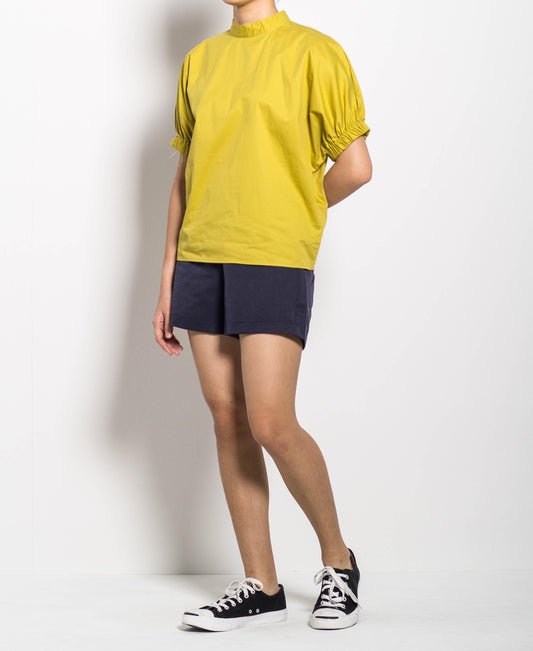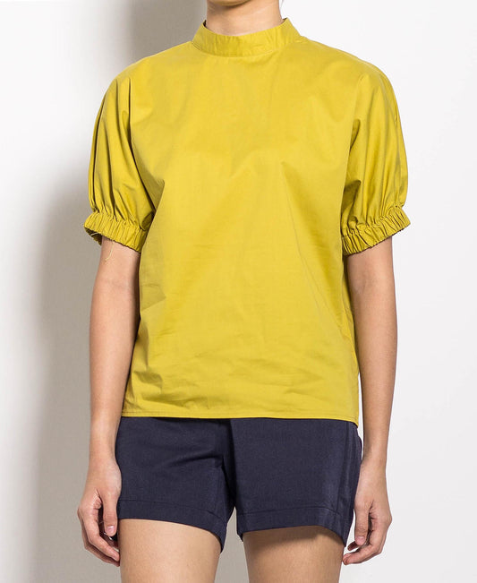 Women Short-Sleeve Stripe Puff Sleeve Blouse - Green - H0W735