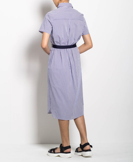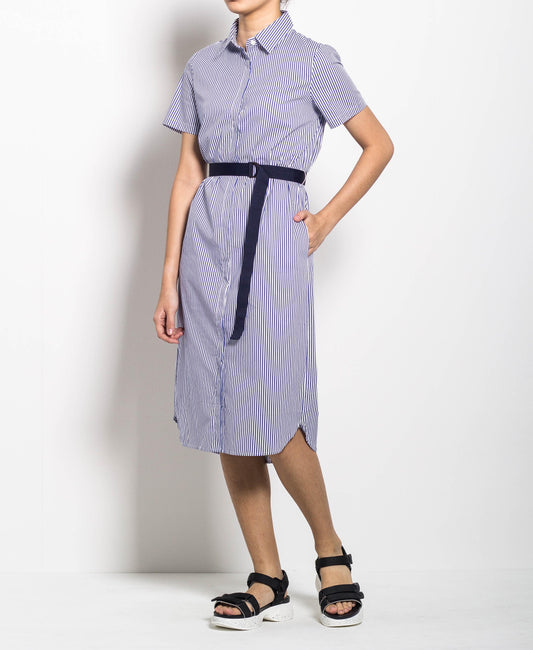 Women Stripe Long Shirt Dress With Belt - Blue - H0W739
