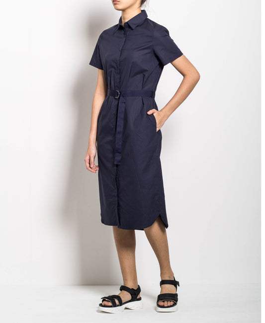 Women Long Shirt Dress With Belt - Navy - H0W740