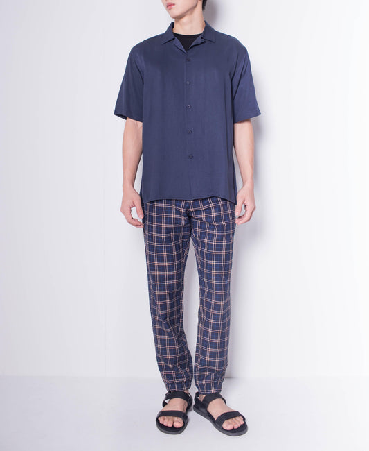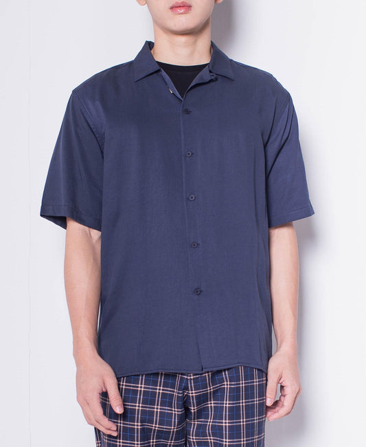 Men Short-Sleeve Camp Collar Shirt - Navy - H0M637