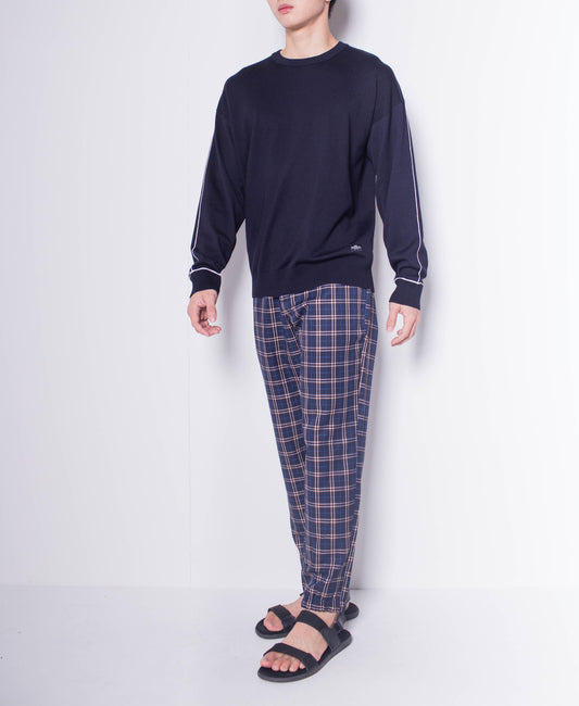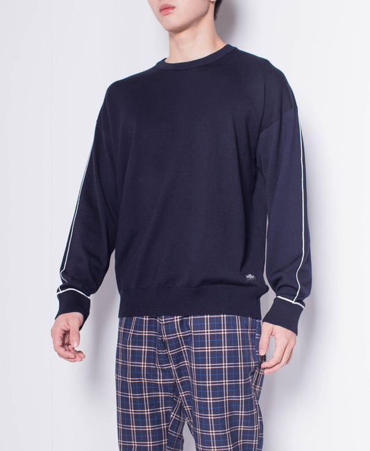 Men Round Neck Long-Sleeve Knitwear - Navy - H0M639