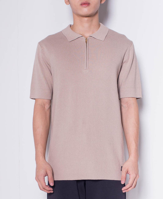 Men Short-Sleeve Knit Zip Polo Shirt - Khaki - H0M635