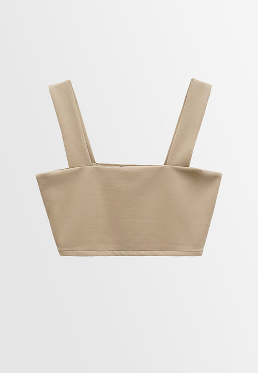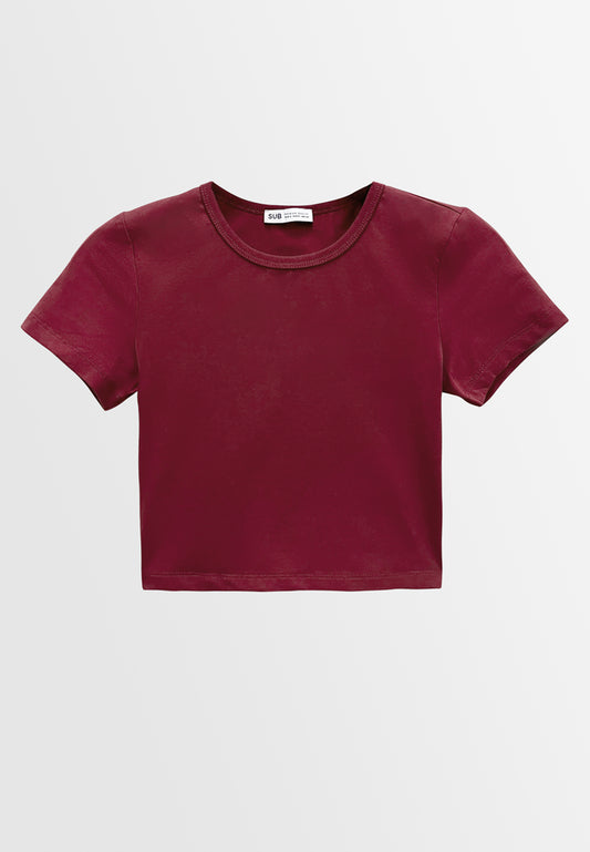 Women Short-Sleeve Crop Top Tee - Dark Khaki - M3W846