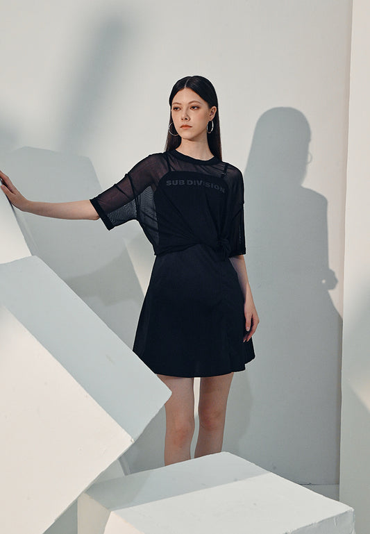 Women Oversized Sheer Mesh Fashion Tee - Black - 410269