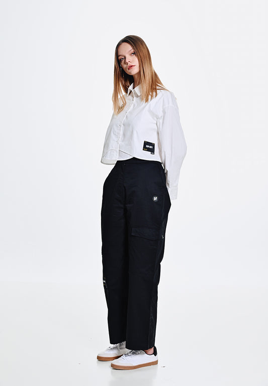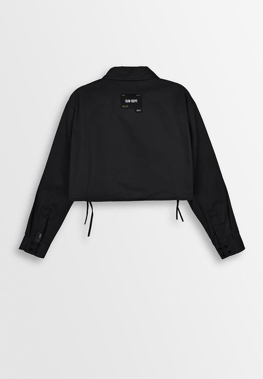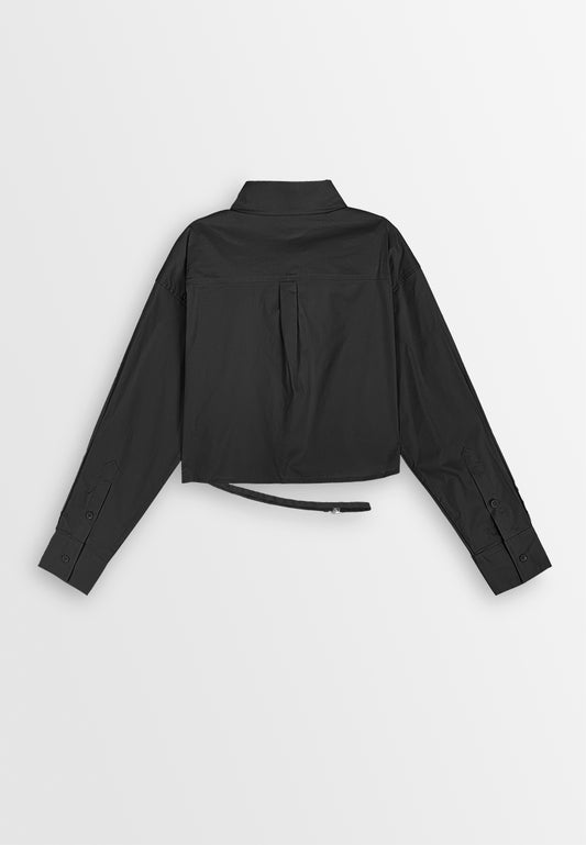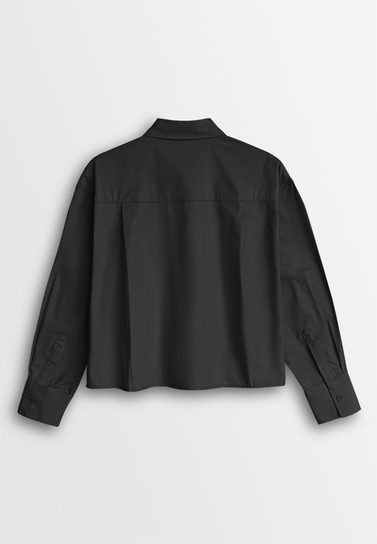 Women Long-Sleeve Cropped Shirt - Black - 310171