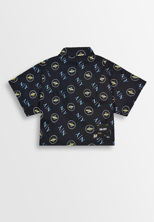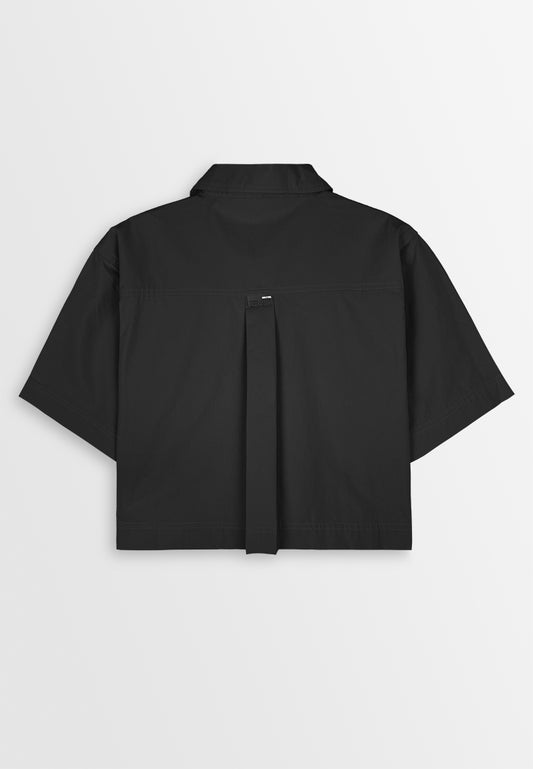 Women Short-Sleeve Cropped Shirt - Black - 310126