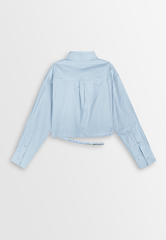 Women Long-Sleeve Crop Shirt - Light Blue - 410274