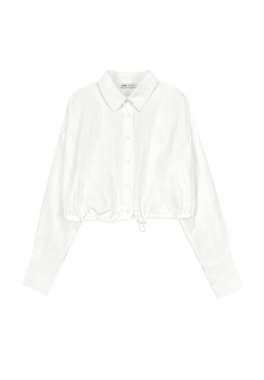 Women Poplin Long-Sleeve Cropped Shirt - White - 310124