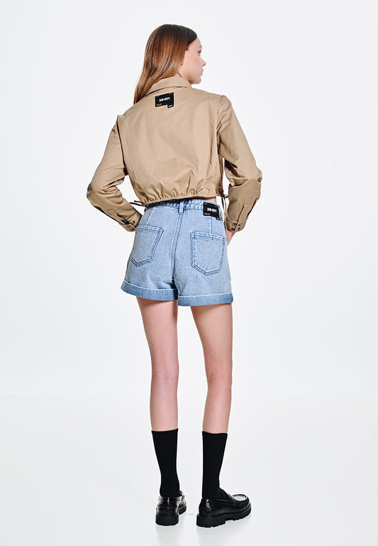 Women Long-Sleeve Cropped Shirt - Khaki - 310130