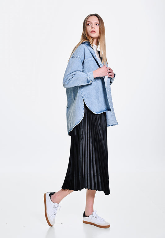 Women Oversized Short-Sleeve Shirt - Black - 410374
