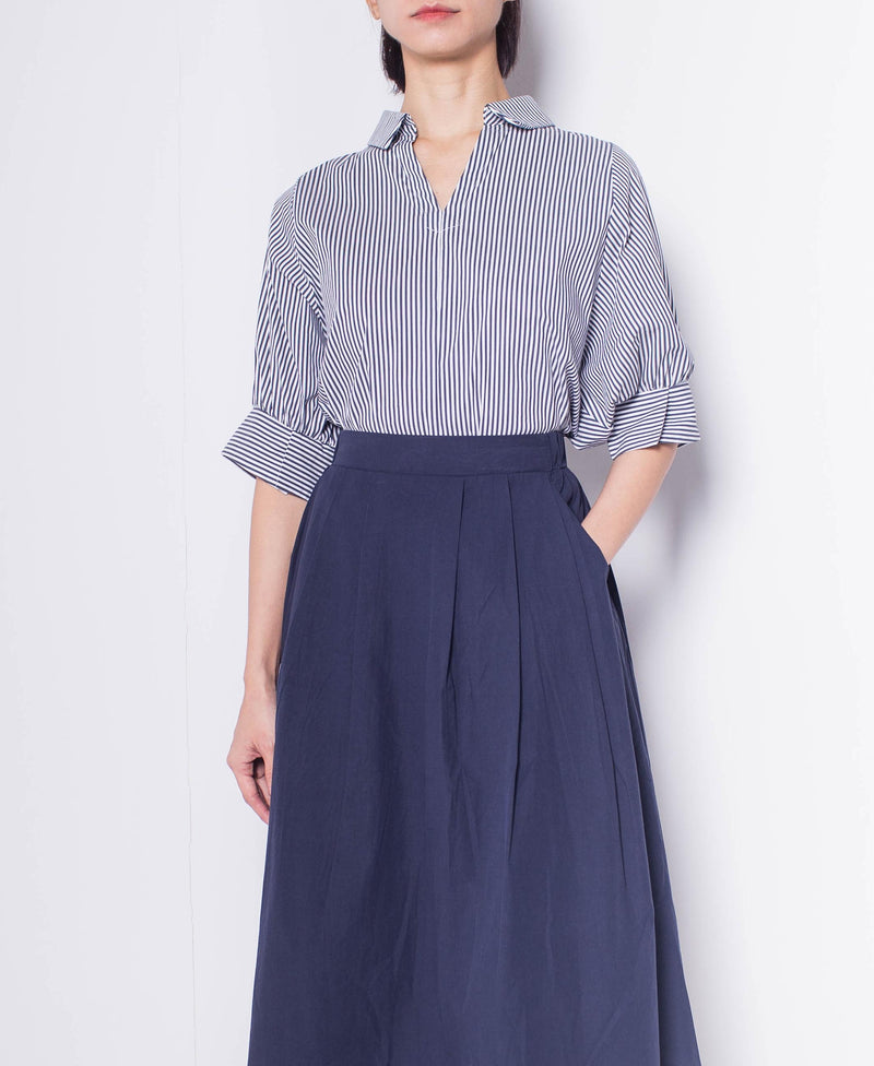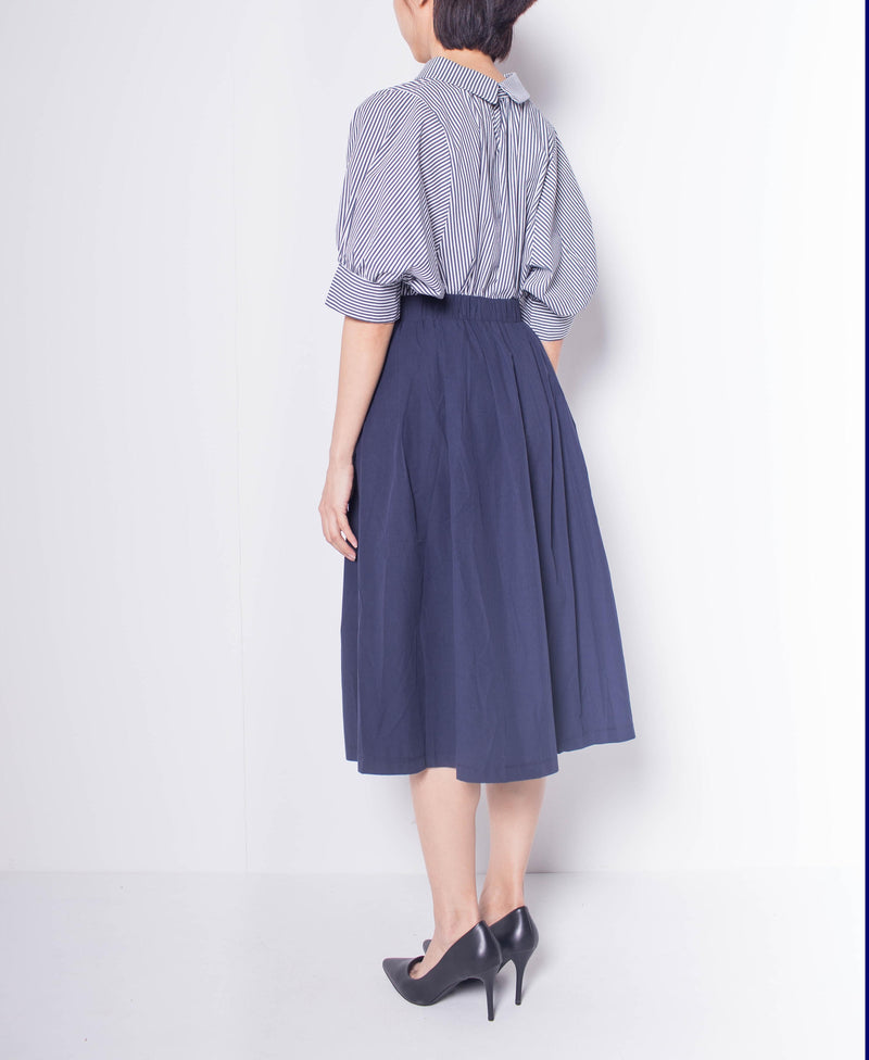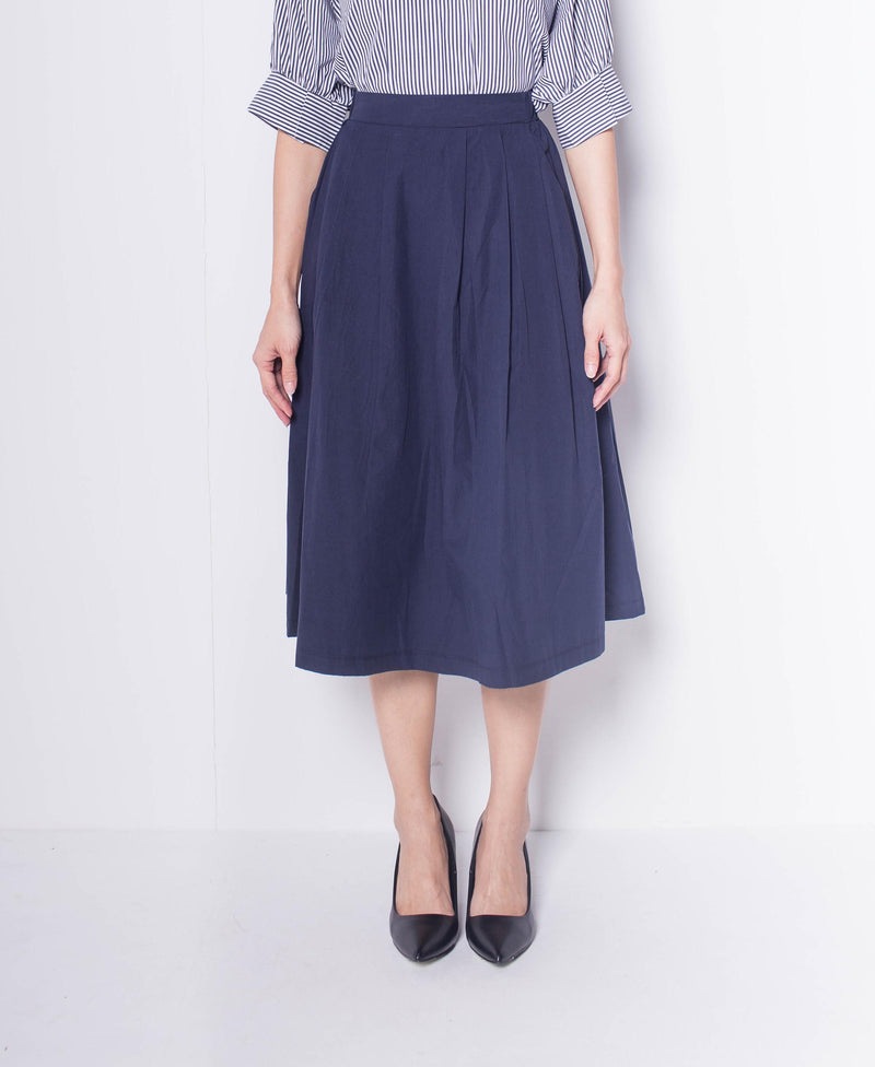 Women Pleated Flare Midi Skirt - Navy - H0W926