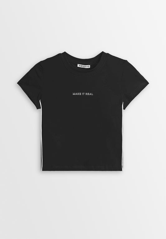 Women Cropped T-Shirt - Black - 410235