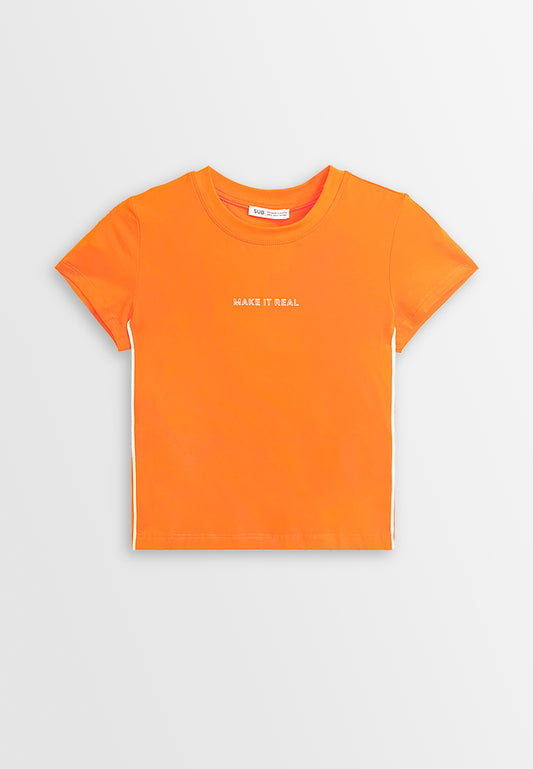 Women Short-Sleeve Fashion Tee - Orange - 410141