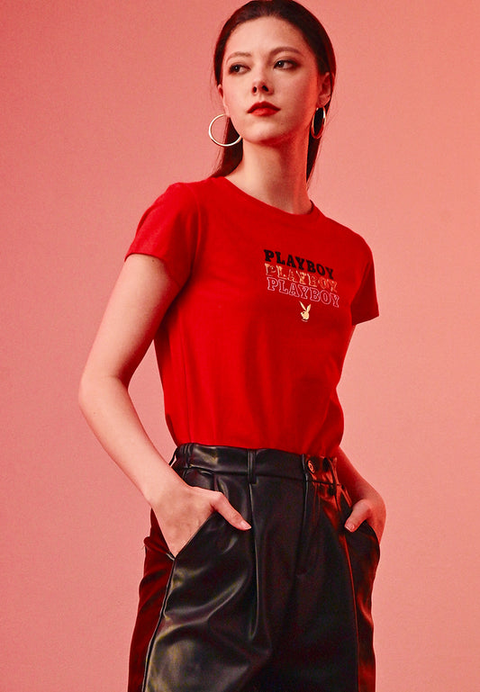 Playboy x SUB Women Short-Sleeve Fashion Tee - Red - 410391