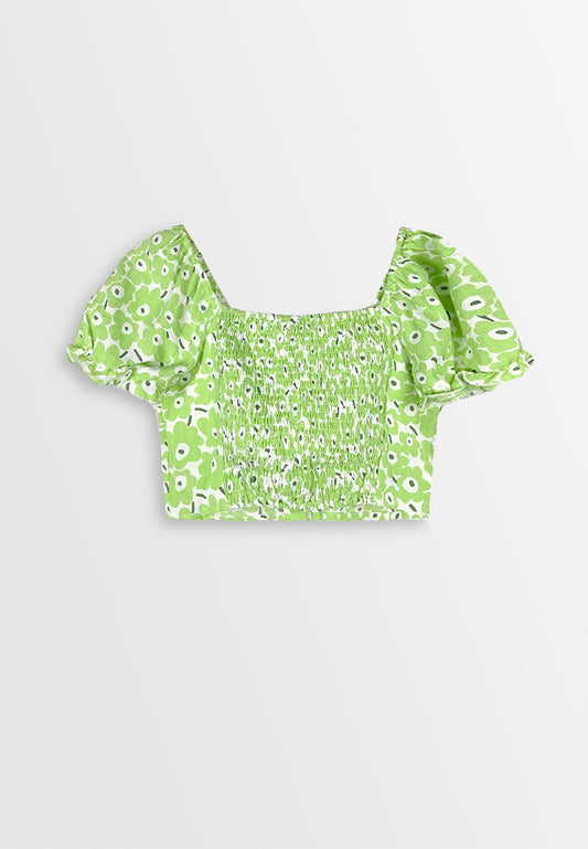 [Online Exclusive] Women Crop Top Shirt Blouse - Green - 410431