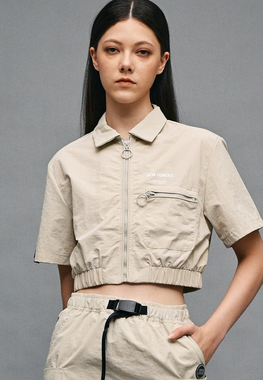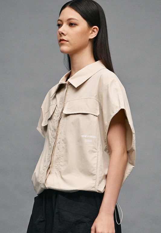 Women Short-Sleeve Blouse - Light Khaki - 410307