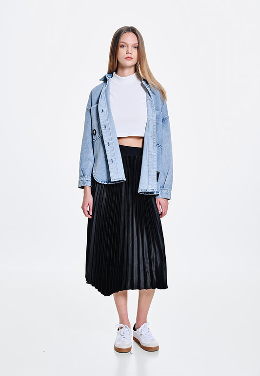 Women Long-Sleeve Crop Shirt - Black - 410275
