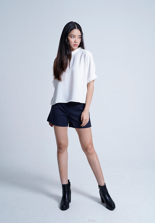 Women Rolled Collared Blouse - White - M0W448