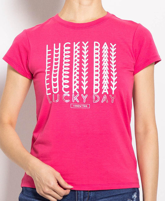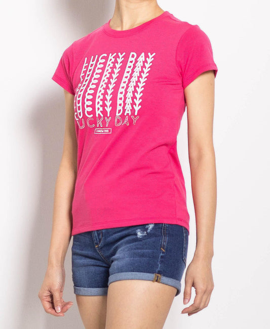 Women Short Sleeve Graphic Tee - Pink - F0W695
