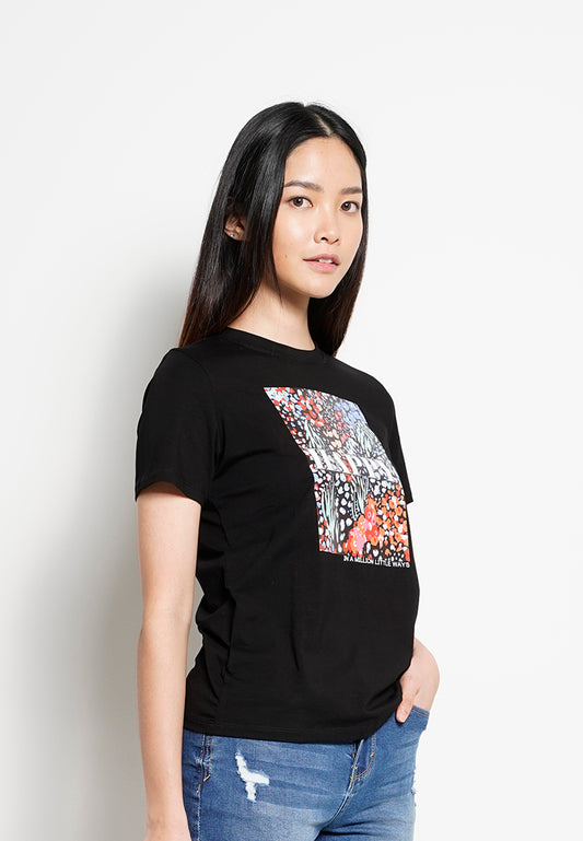 Women Short-Sleeve Graphic Tee - Black - F3W860