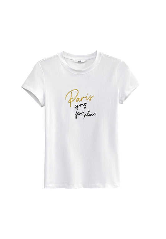 Women Short Sleeve Graphic Tee - White - F0W701