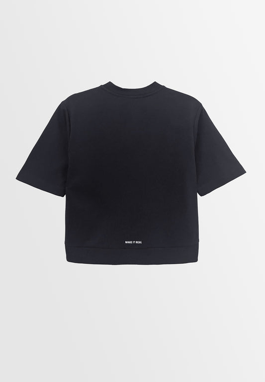 Women Short-Sleeve Sweatshirt - Black - H2W701