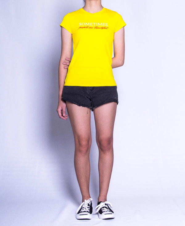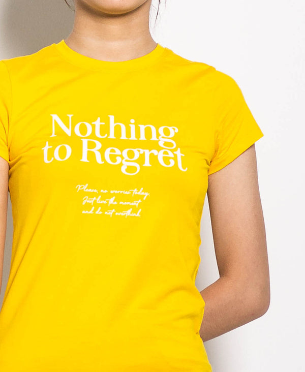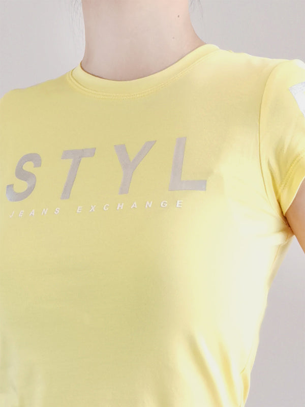 Women Short Sleeve Slogan Tee - Yellow - H0W771