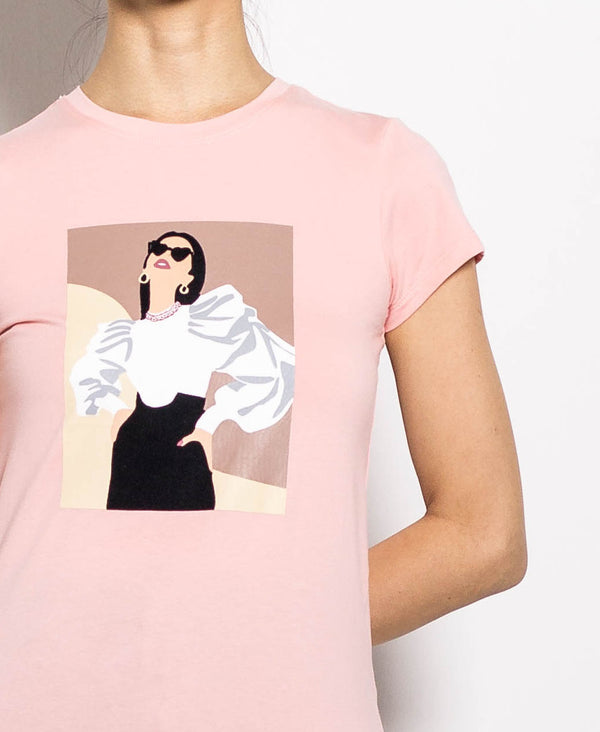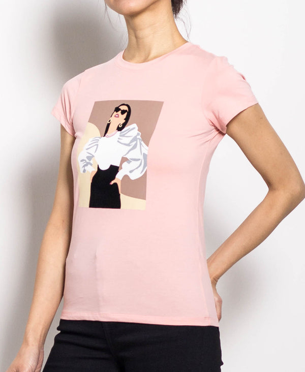 Women Short-Sleeve Graphic Tee - Pink - H0W777