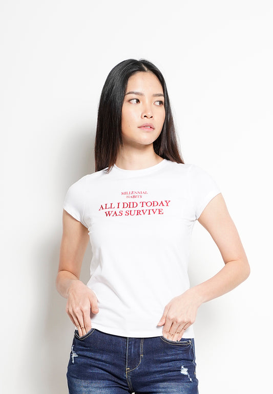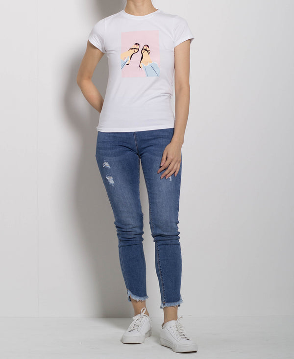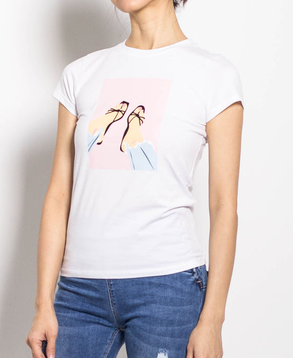 Women Short-Sleeve Graphic Tee - White - S2W302