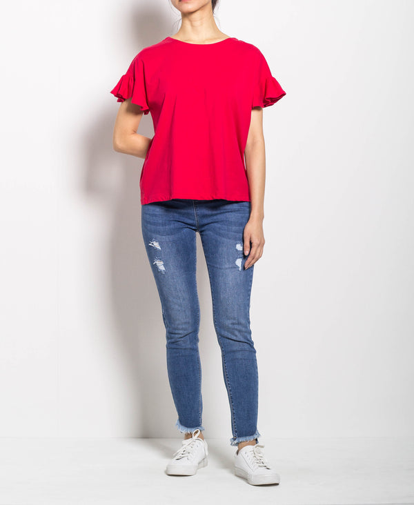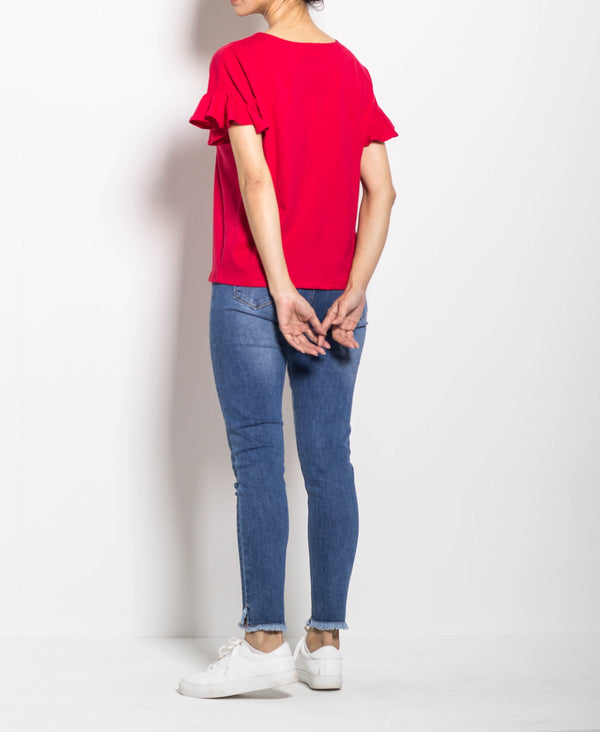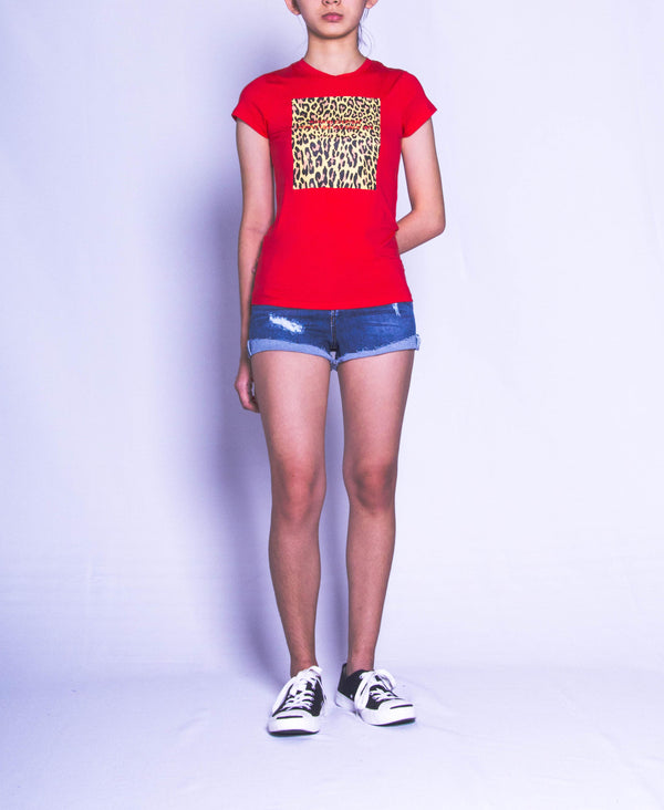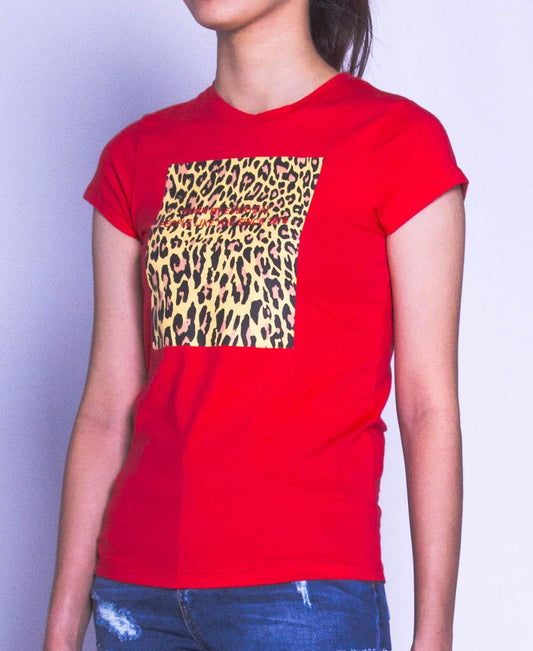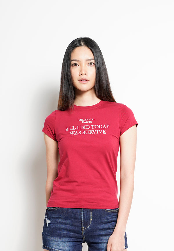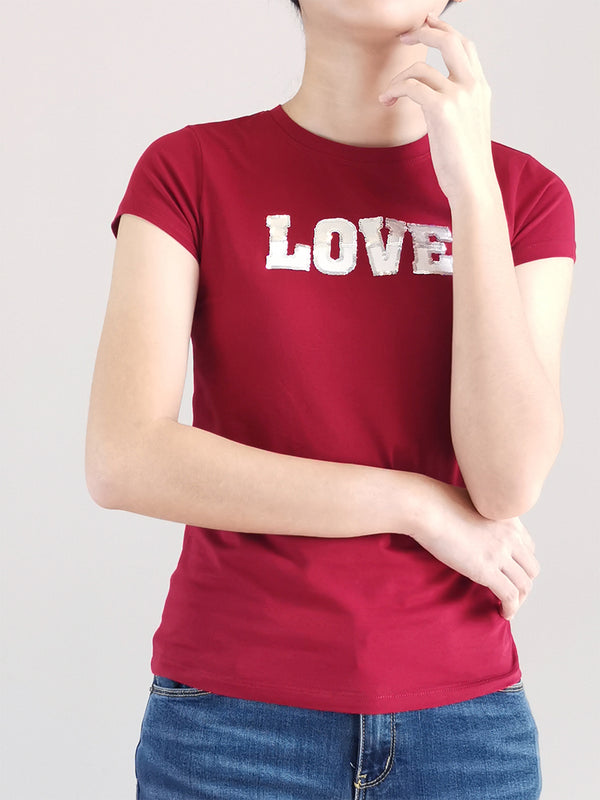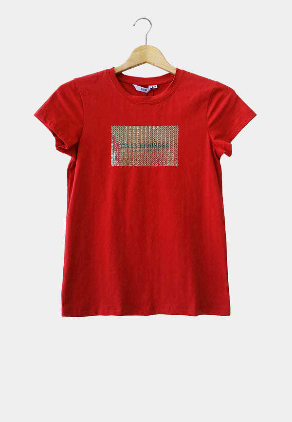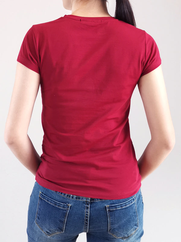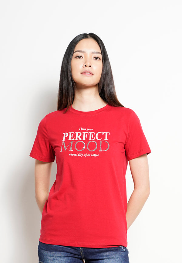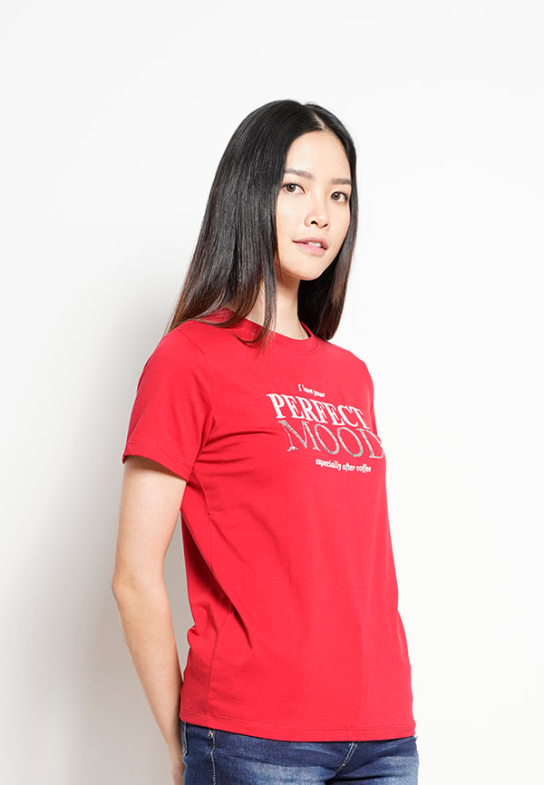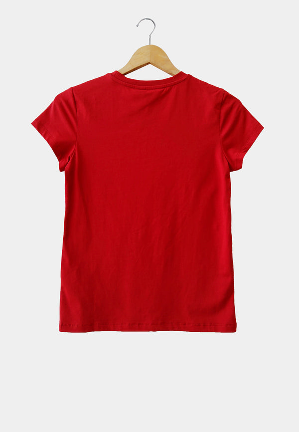 Women Short Sleeve Graphic Tee - RED -H0W906