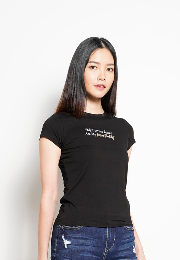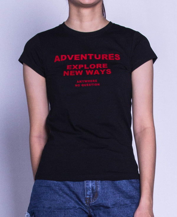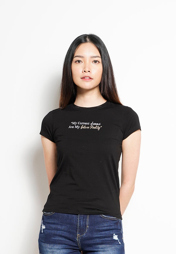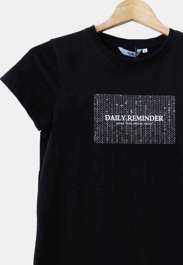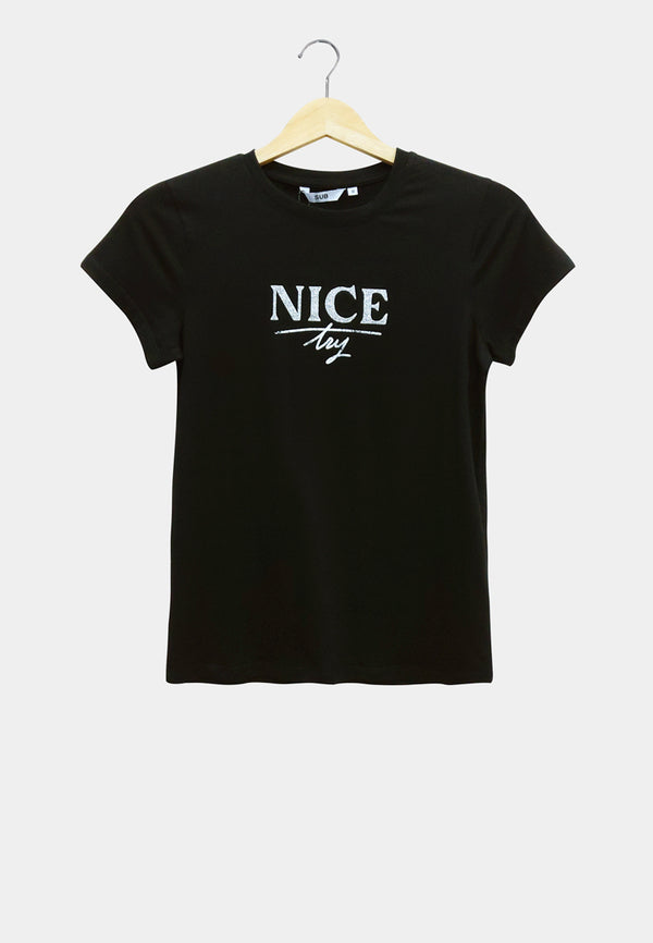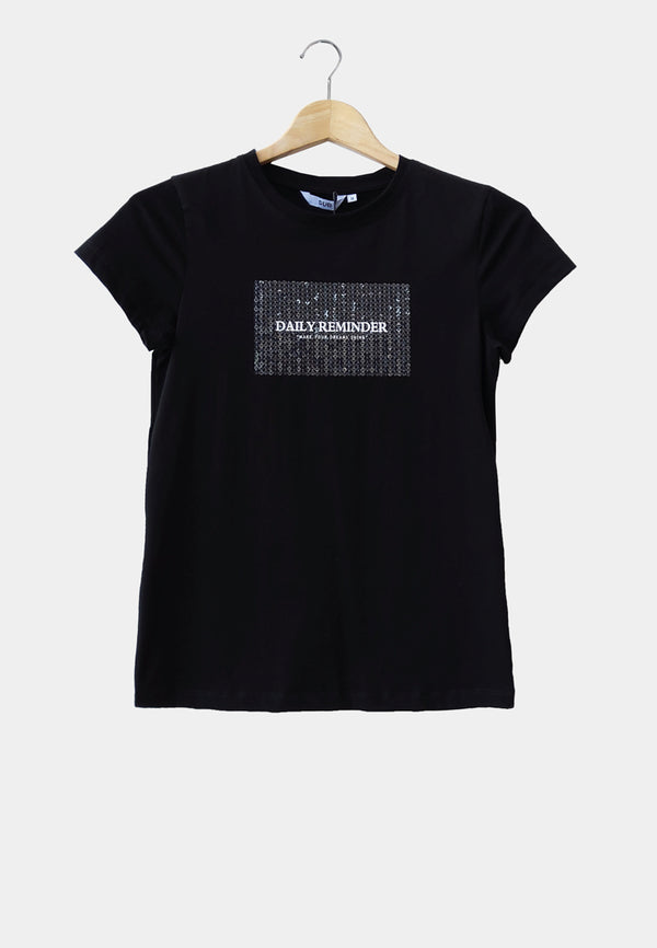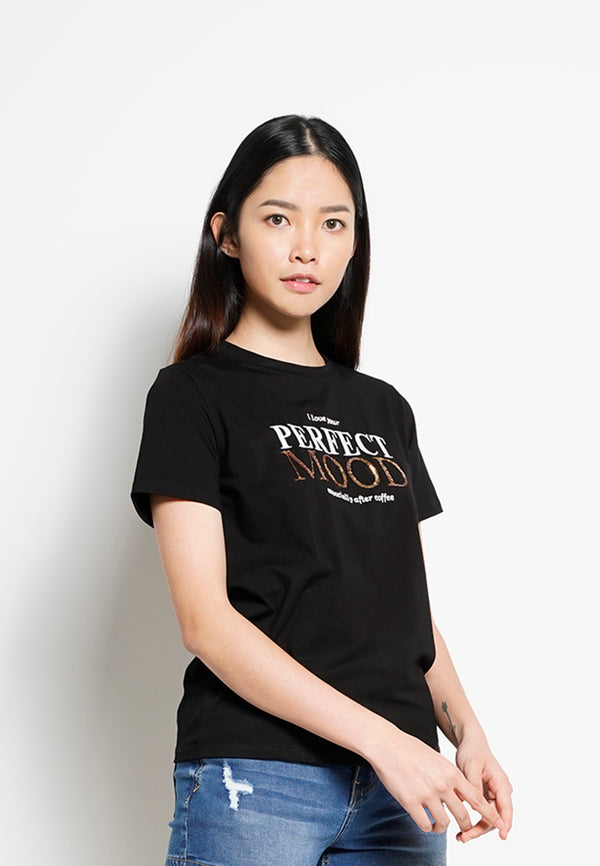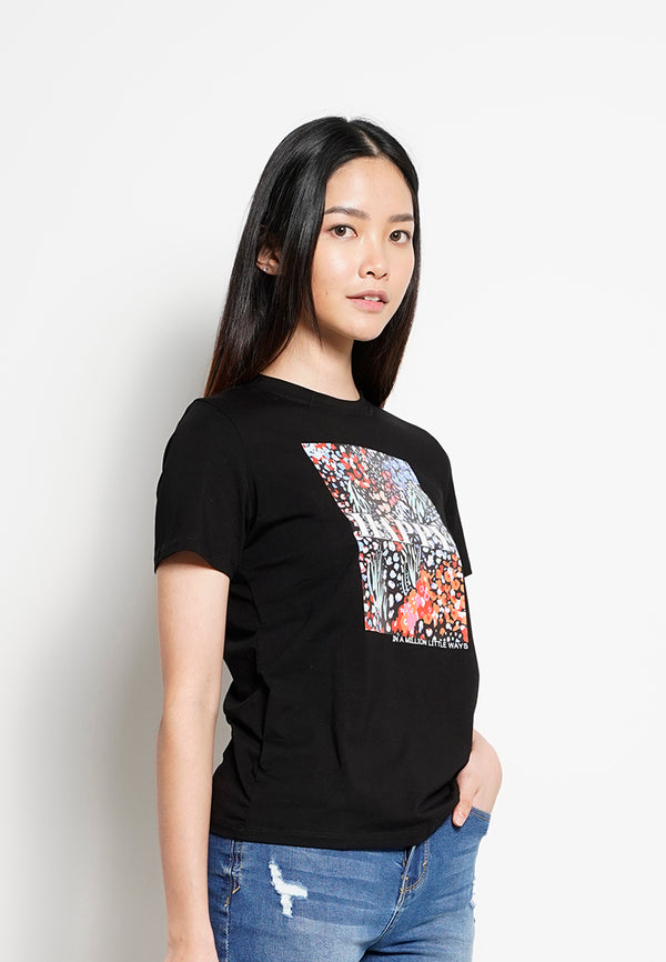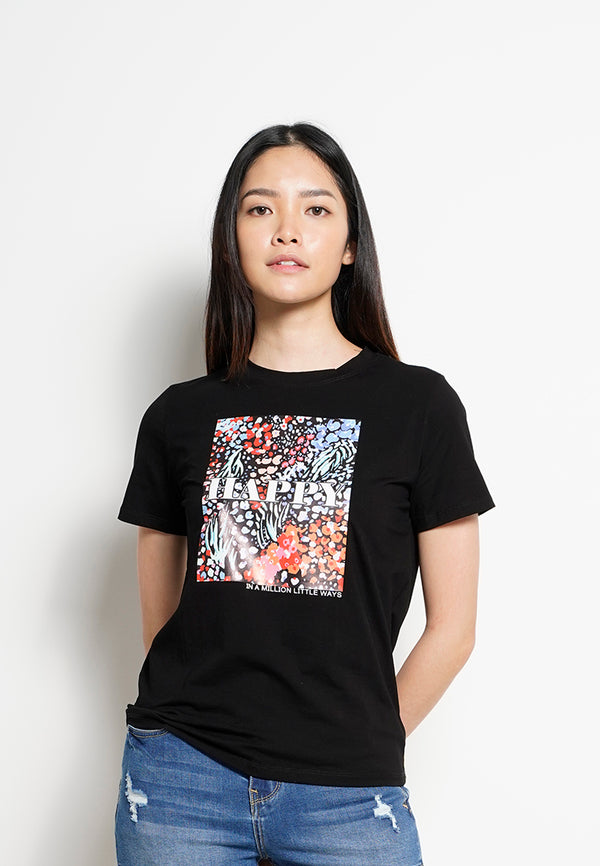 Women Short Sleeve Graphic Tee - Black - H9W387