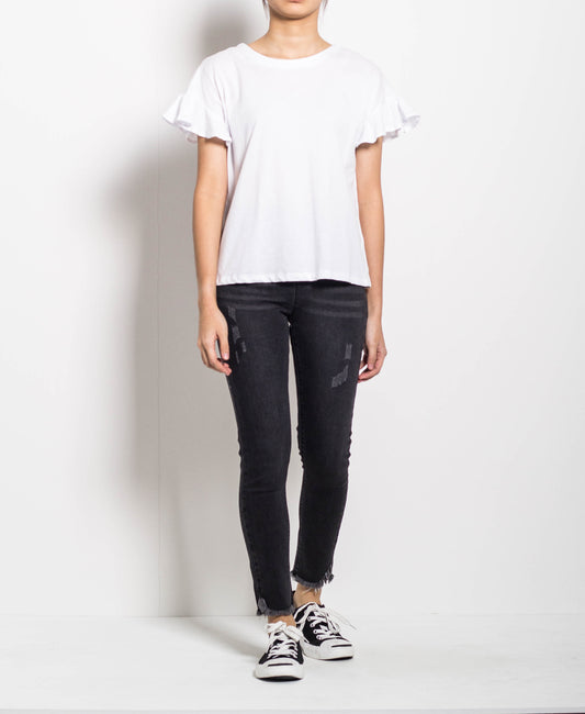 Women Ruffled Short-Sleeve Tee - White - H0W790