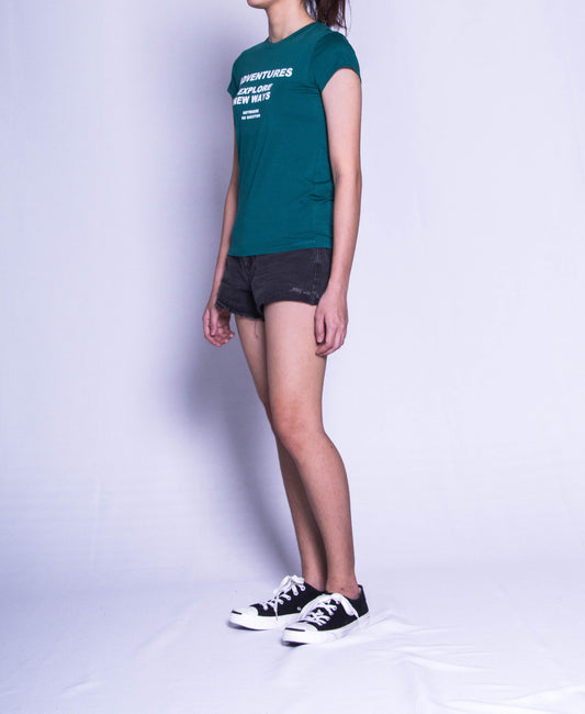 Women Short Sleeve Graphic Tee - Green - F9W214